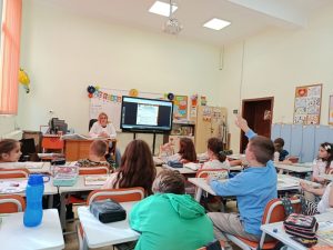 Госпожа Георгиева започна с кратко и ясно обяснение какво представляват инфекциите и как се предават, колко красиви изглеждат вирусите на картинка, но и колко опасни за здравето могат да бъдат. Децата научиха за различните начини, по които можем да се заразим – чрез контакт с болни хора, замърсени предмети или храна. Те също така разбраха колко е важно да носим предпазна маска в медицинско заведение, да мием ръцете си редовно и правилно.
