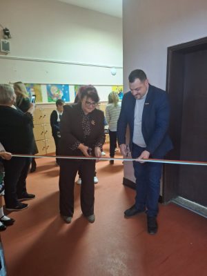 Г-н Владимир Крумов – областен управител на област Бургас – откри новия чуждоезиков кабинет на ОУ „П. Р. Славейков“, изграден по Национална програма „Осигуряване на сигурна и достъпна образователна среда“.