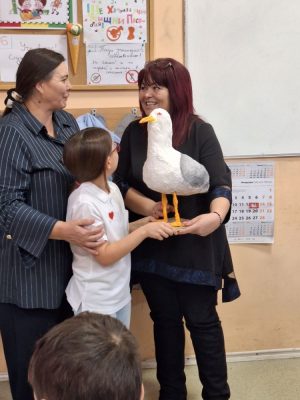 През първия ден г-жа Таня Колева и г-жа Таня Кисьова представиха в първи клас училищната ни иновация „Изкуството да живеем заедно“. Пред партньорските училища споделихме, че позитивната образователна среда, спазването на правилата и нулевата толерантност към агресията са важен приоритет за Славейковото училище.