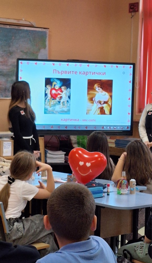 Учениците от гимназията по романски езици умело съчетаха знанията по френски език с празника Свети Валентин. На урока присъстваха заместник-директорите на ПГРЕ „Г. С. Раковски“ – г-жа Неди Абрашева и г-жа Вера Антонова.