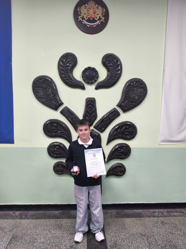 Петър Атанасов от 5. В клас на ОУ „П. Р. Славейков“ – Бургас, с ръководител г-жа Деянова, продължи успешната традиция, поставена от София Мутафчиева.