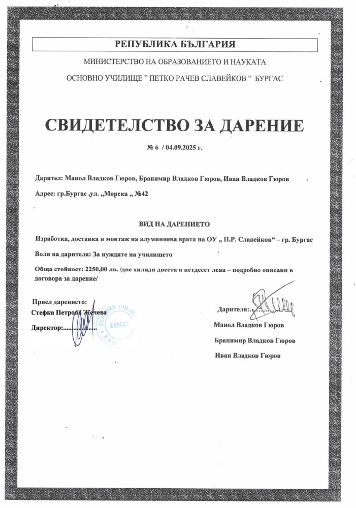 04.09.2025 г. ОУ „П. Р. Славейков“ Манол Гюров